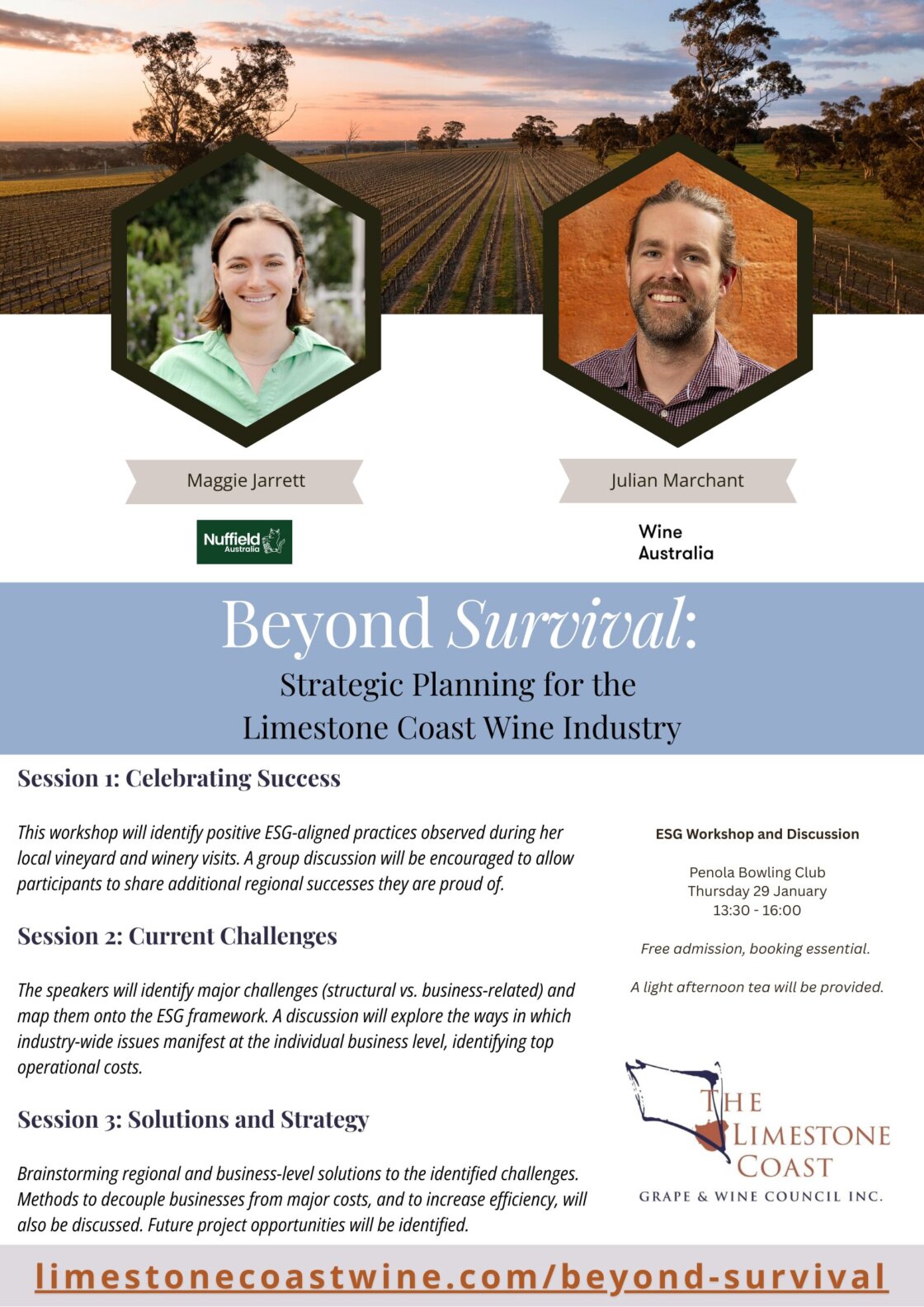 ESG Workshop and Discussion at the Penola Bowling Club on Thursday 29 January (13:30 – 16:00).